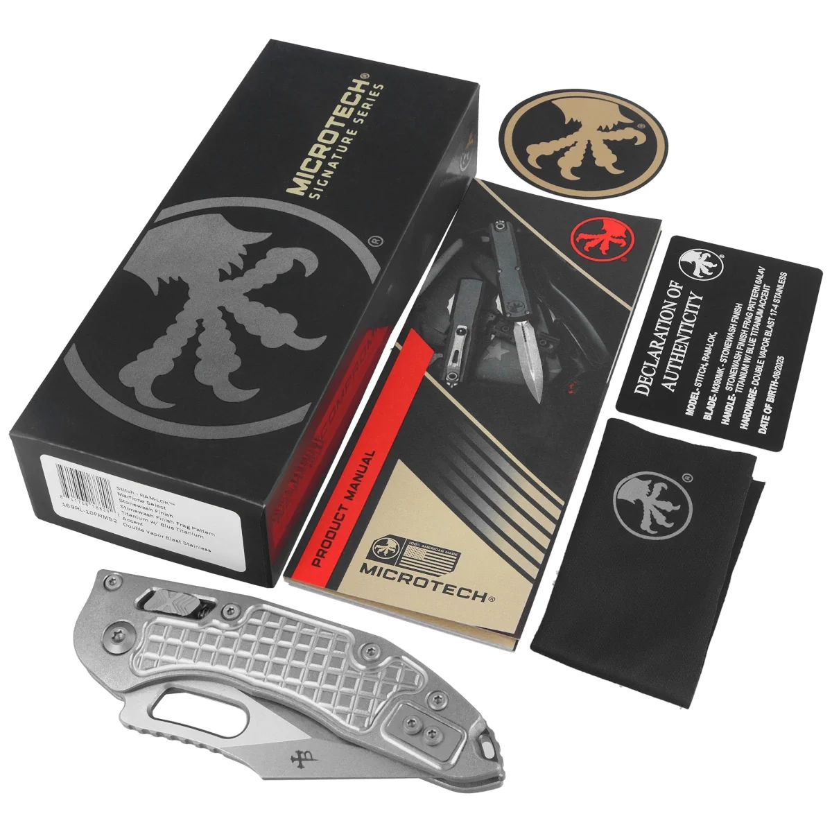 Microtech Marfione Select Stitch Ram-Lok S/E Knife Frag Titanium, Double Vapor Blast HW, Stonewashed M390MK by Borka Blades and Tony Marfione (169RL-10FRMS2)