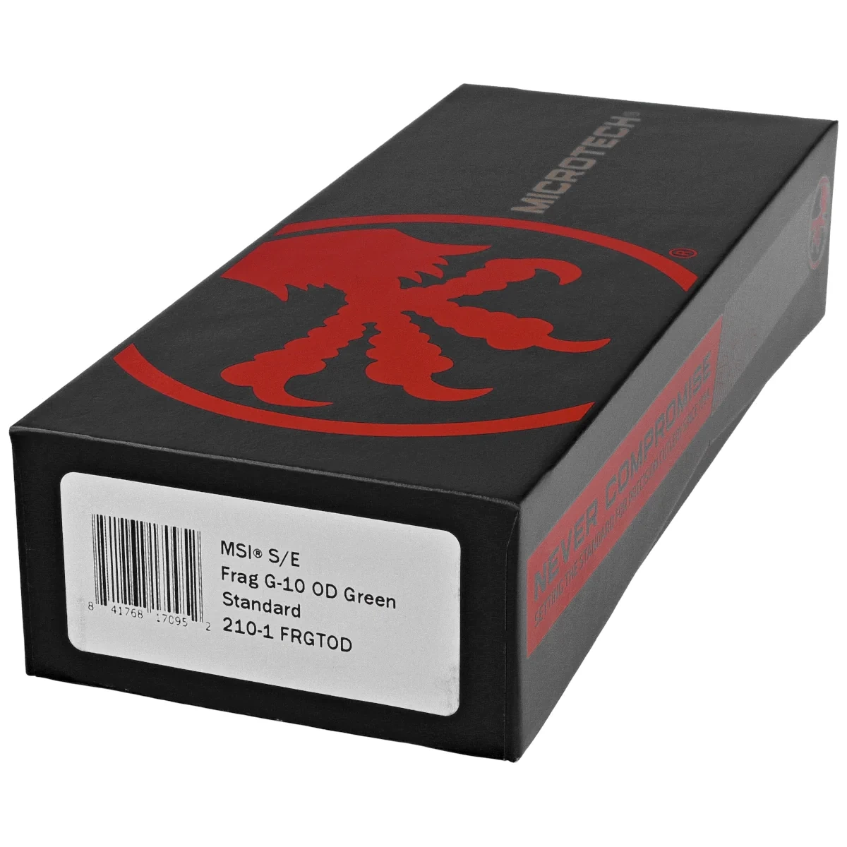 • MSI S/E OD Green Frag G10, Black folding knife with intuitive RAM-Lok. Superior M390MK blade steel, the result of collaboration between Microtech and Bohler engineers. Ergonomic aluminum handle. Designed by Anthony Marfione of Microtech!