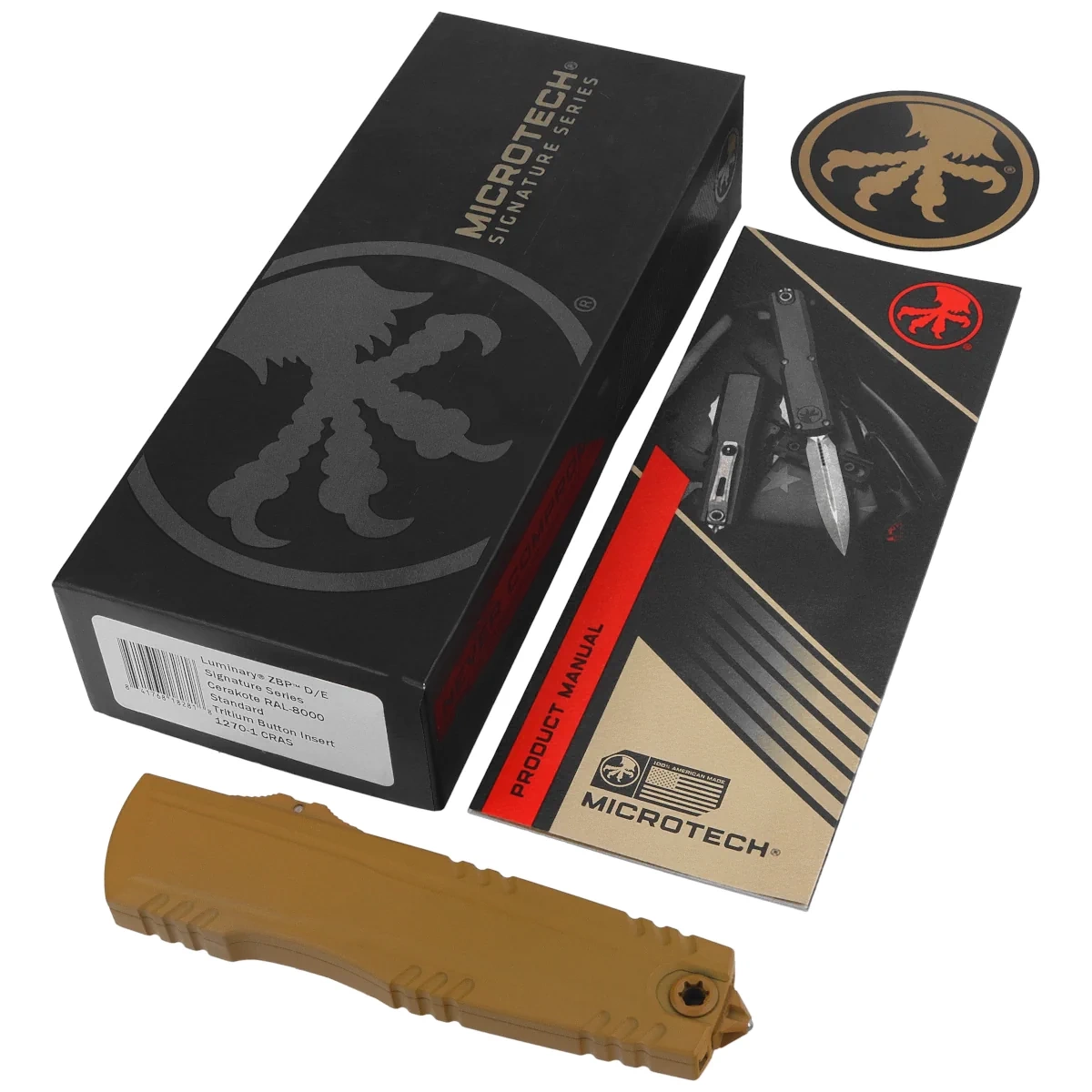 - Luminary ZBP D/E Signature Cerakote RAL-8000 Aluminum, Cerakote RAL-8000 is a new model from Microtech with an innovative ZBP system. Crud Kutter System, Dual-Fuel Drive Train and Zero Blade Play™ - no blade play when unfolded.