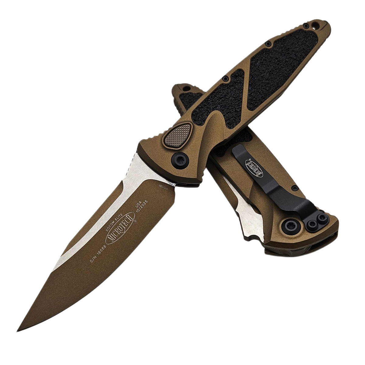 Microtech Socom Elite Auto S/E Knife Cerakote Burnt Bronze Aluminum, Cerakote Burnt Bronze M390 by Tony Marfione (160A-1UB-C19Z7)