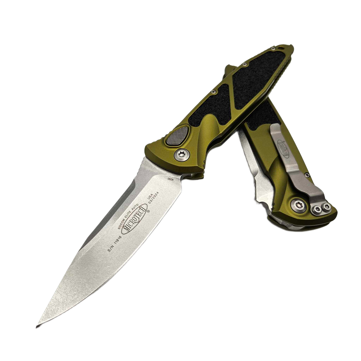 Microtech Socom Elite Auto S/E Knife OD Green Aluminum, Stonewashed M390 by Tony Marfione (160A-10OD)