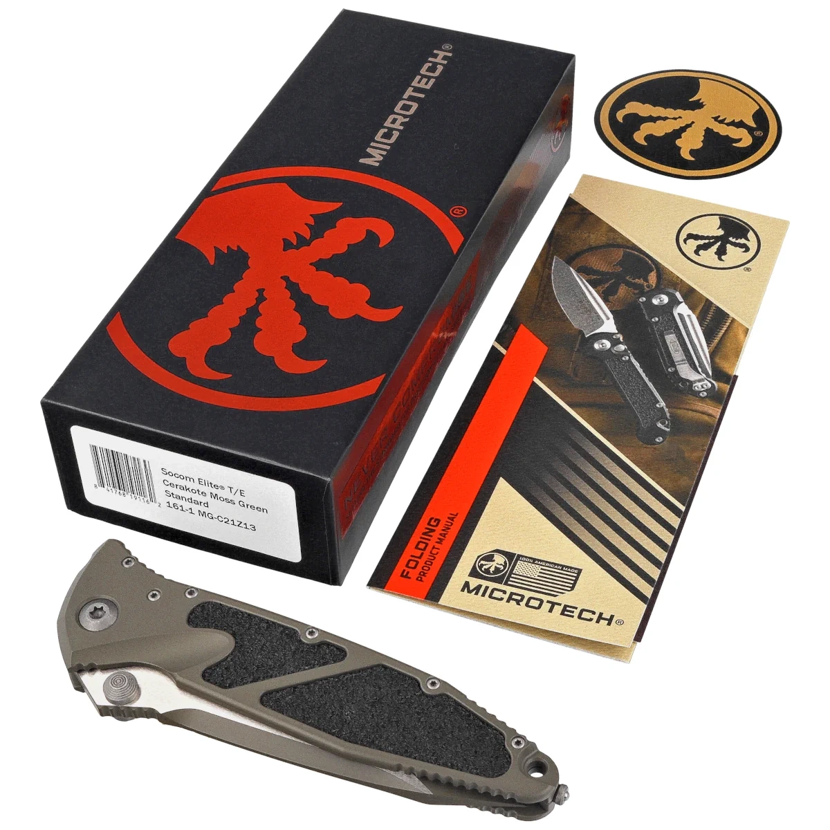 Microtech Socom Elite T/E-M Knife Cerakote Moss Green Aluminum, Cerakote Moss Green M390MK by Tony Marfione (161-1MG-C21Z13)