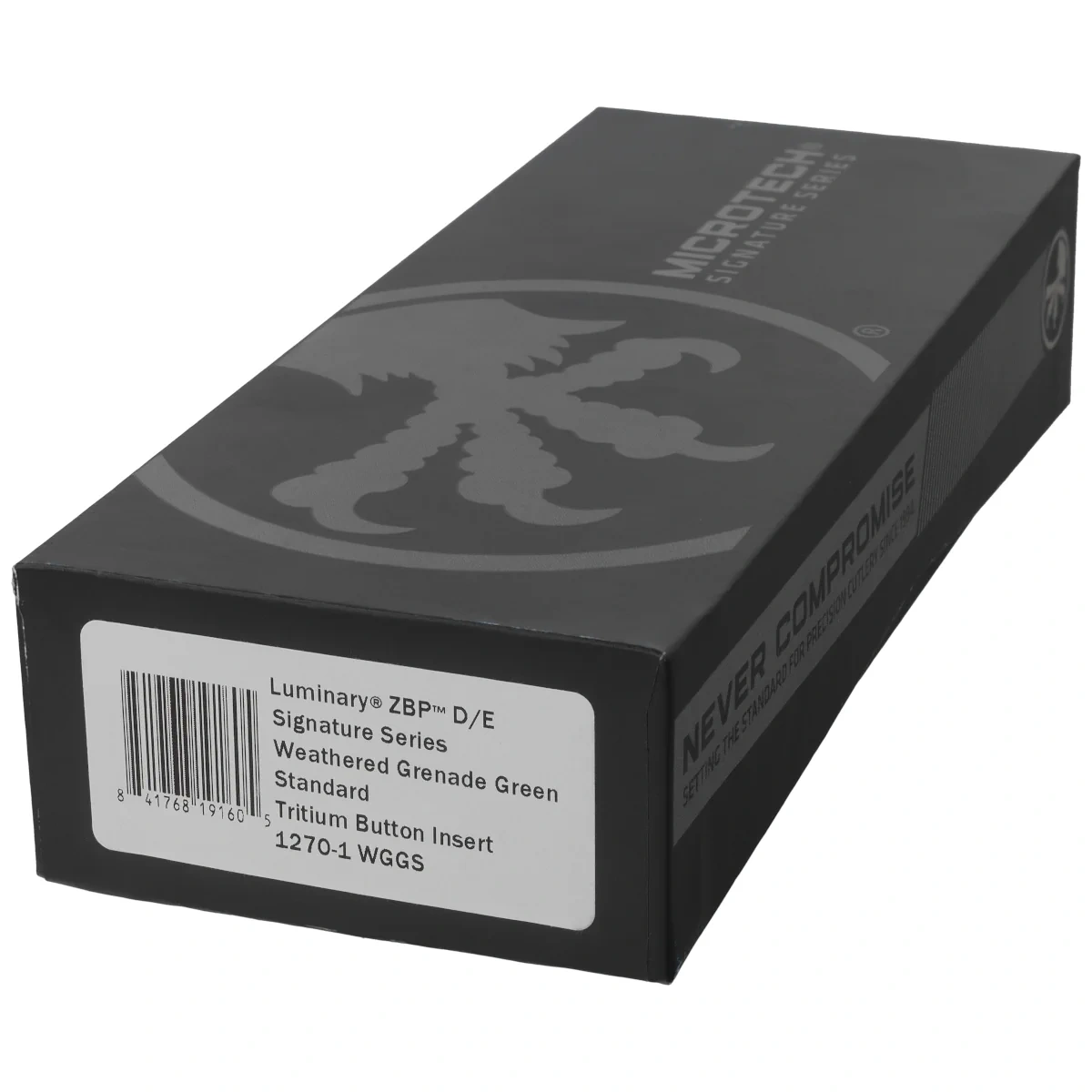 Luminary ZBP D/E Signature Weathered Grenade Green Aluminum, Weathered Grenade Green is a full-size OTF (Out The Front) automatic knife from the prestigious Signature Series. The design is characterized by the absolute absence of any blade play when unfolded - full rigidity and reliability of the mechanism. The blade machine “blade play free” is distinguished by a number of improvements such as; Crud Kutter™, Dual-Fuel Drive Train™, Zero Blade Play™. Operating in D/A (Double Action) mode, it allows the blade to be instantly extended and retracted with a flick of the thumb, guaranteeing unparalleled speed and reliability in situations requiring immediate response. The proprietary design by Tony Marfione, founder and owner of Microtech Knives, combines modern design with the highest quality workmanship to create a unique model valued by collectors and professional users alike.