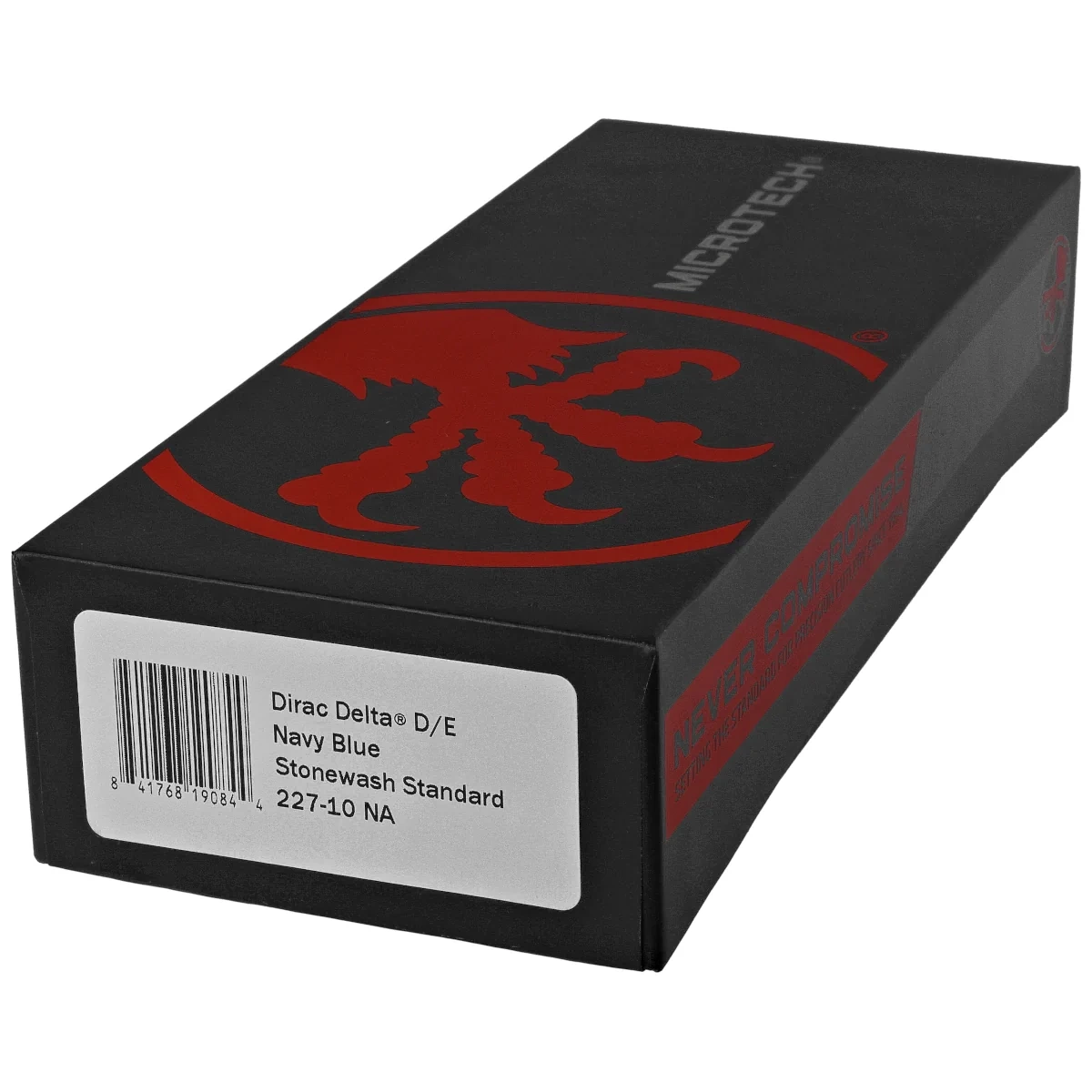 Dirac Delta D/E Navy Aluminum, Stonewashed is an enlarged OTF automatic knife from the Dirac series. Operating in D/A mode , it features a hellishly fast blade extension mechanism. Slider button on the side of the handle. 100% made and assembled in the USA. Designed by Anthony Marfione, knifemaker and owner of Microtech Knives.