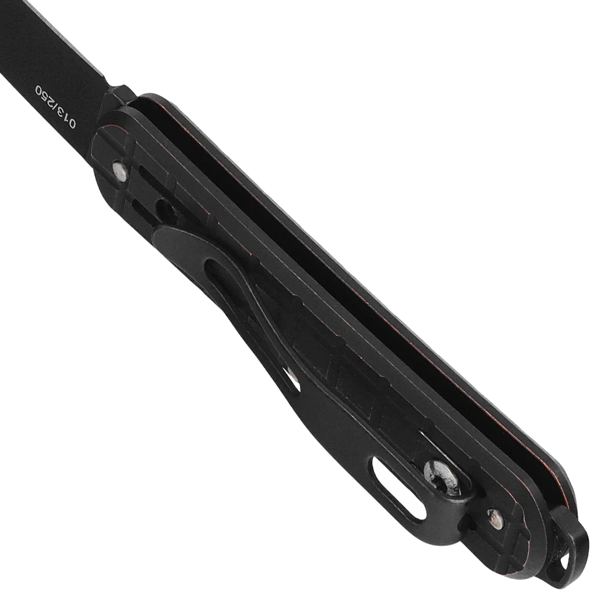 • Vulpis 130 LE No 013/250 Pocket Knife Grenade Pattern Black Copper, Black Stonewashed limited edition versatile pocket knife with modern style, made of the finest materials. Winner of the 2023 European Product Design Award!