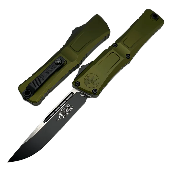 Combat Troodon Gen III S/E OD Green Aluminum, Black this largest of the automatic knives is the pinnacle of precision engineering and tactical prowess in the field of OTF (Out The Front) knives. Built for a wide range of utility applications, it boasts a 25% larger size compared to the flagship Troodon. Precisely crafted, it features a sophisticated and hellishly fast mechanism that extends the razor-sharp blade. 100% made and assembled in the USA. Designed by Anthony Marfione, knifemaker and owner of Microtech Knives.