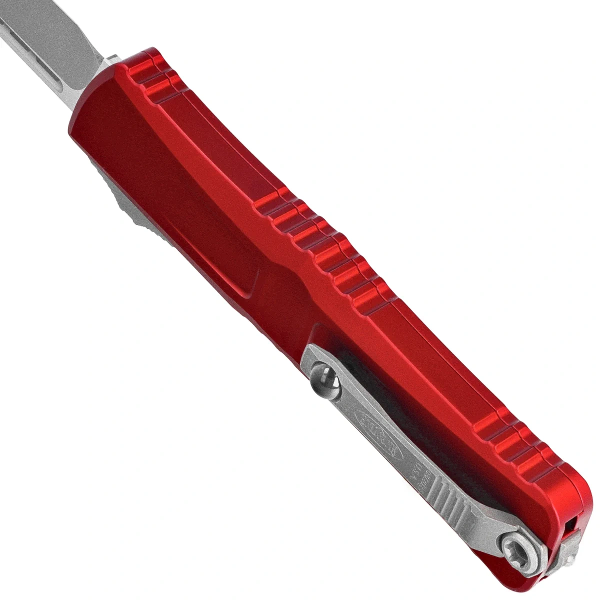 Handle - made with excellent precision in 3D technology on CNC milling machines, from Mil-Spec coated aluminum 6061-T6. The surface texture of the Handle and the deep notches (jimping) on it make the knife non-slip in the hand during use. The slim profile and milled two-position (right/left) solid deep-carry clip allow the knife to be carried discreetly in the pocket, in tip-down (blade tip down) position. Equipped with a smooth rollerball, which allows the knife to slide easily into the pocket without damaging the pocket edges. The clip bears the Microtech logo and production date. The Handle is finished with glass breaker, a steel triangle, into which a tungsten carbide ball has been pressed.