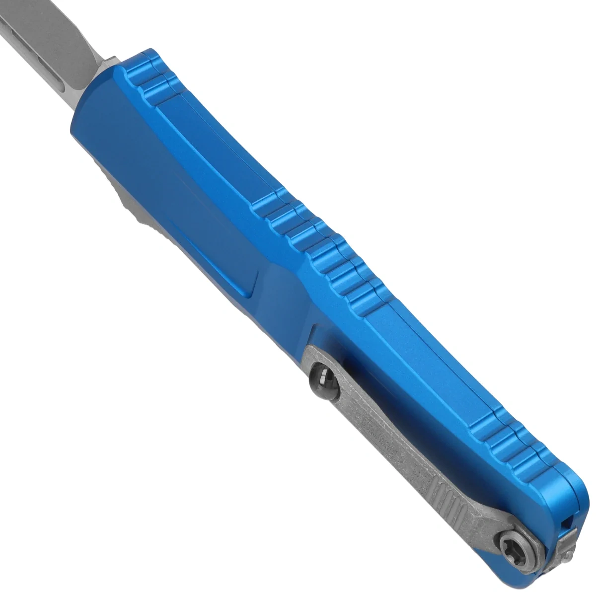 Handle - made with excellent precision in 3D technology on CNC milling machines, from Mil-Spec coated aluminum 6061-T6. The surface texture of the Handle and the deep notches (jimping) on it make the knife non-slip in the hand during use. The slim profile and milled two-position (right/left) solid deep-carry clip allow the knife to be carried discreetly in the pocket, in tip-down (blade tip down) position. Equipped with a smooth rollerball, which allows the knife to slide easily into the pocket without damaging the pocket edges. The clip bears the Microtech logo and production date. The Handle is finished with glass breaker, a steel triangle, into which a tungsten carbide ball has been pressed.