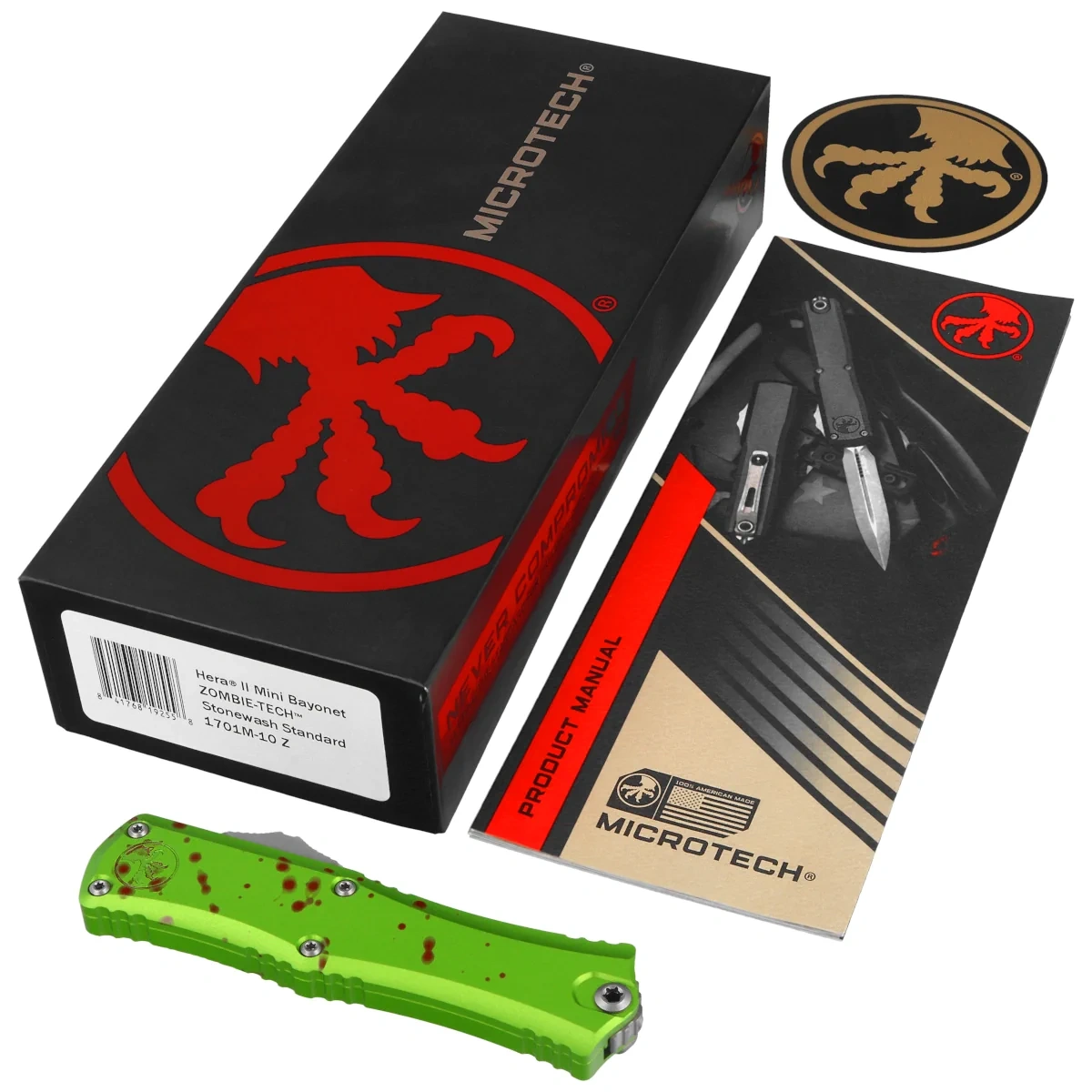 Microtech Hera II Mini Bayonet OTF Knife Zombie Aluminium, Stonewashed M390MK by Tony and Sean Marfione (1701M-10Z)