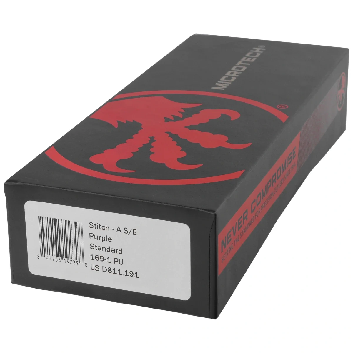 Microtech Stitch-A S/E Knife Purple Aluminum, Black M390 by Borka Blades and Tony Marfione (169-1PU)