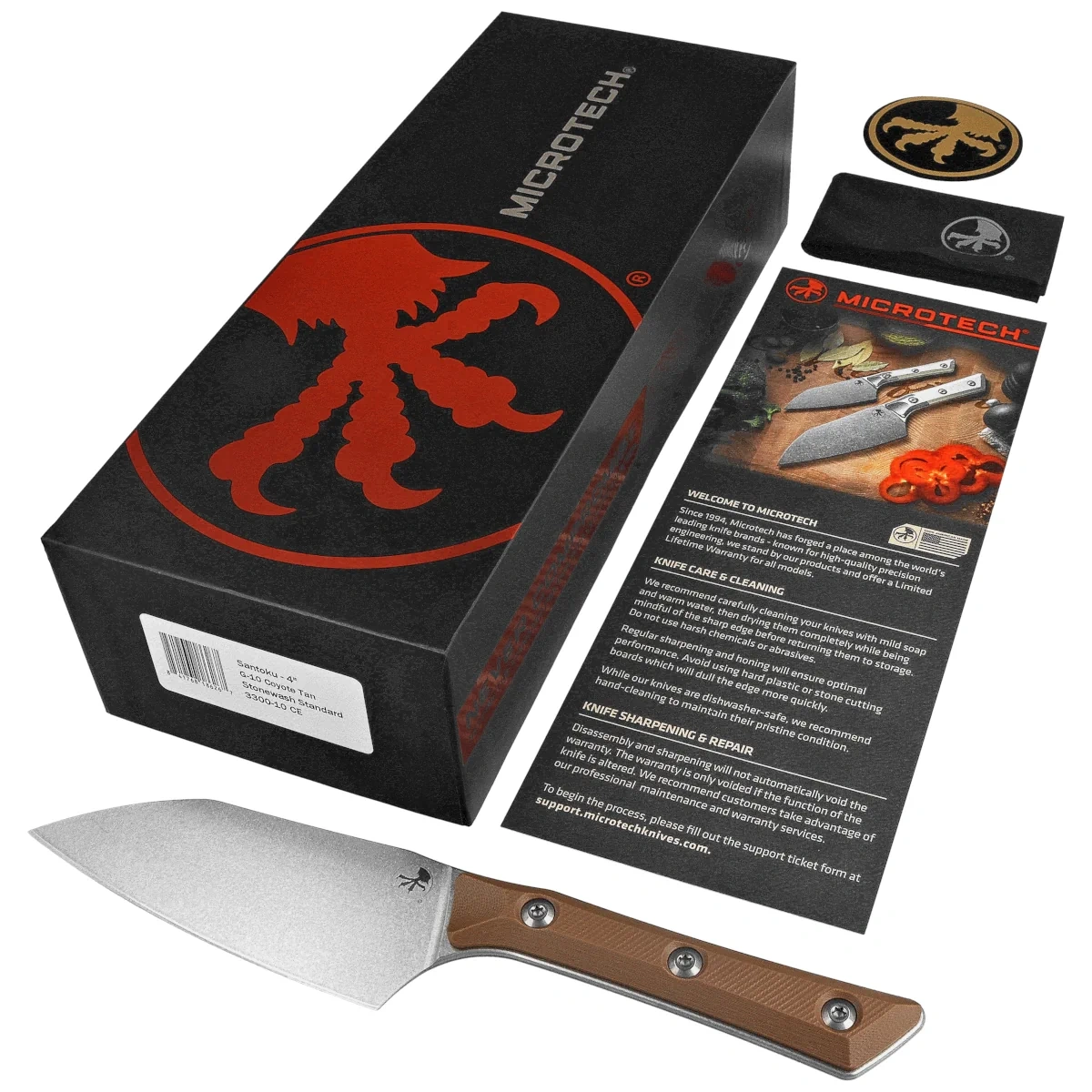 Microtech Santoku 4.2'' Kitchen Knife Coyote Tan G10, Stonewashed MK390 (3300-10CE)