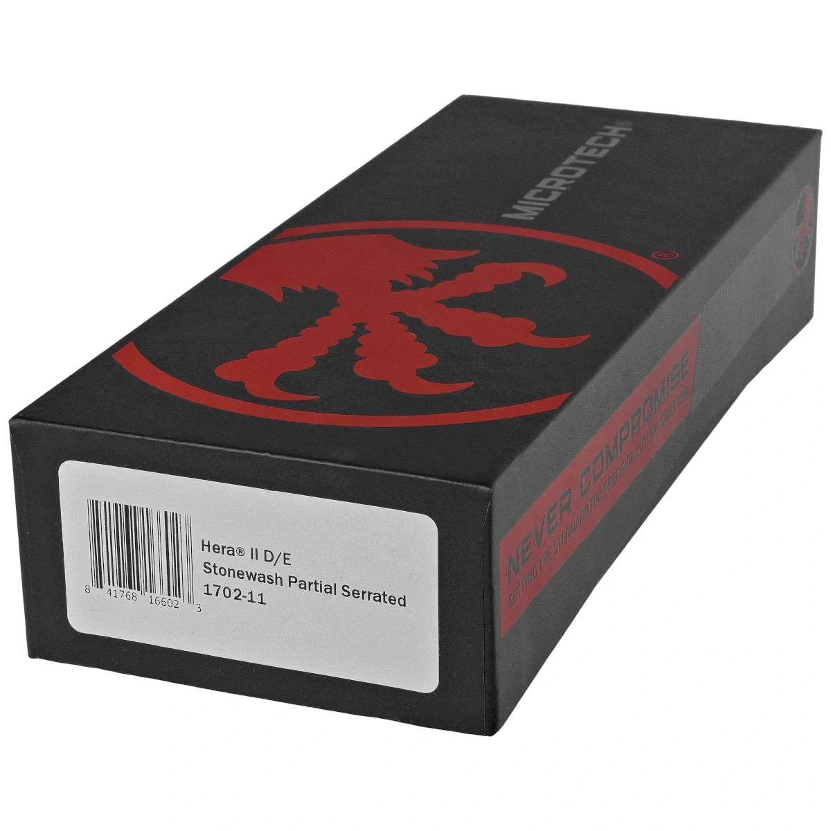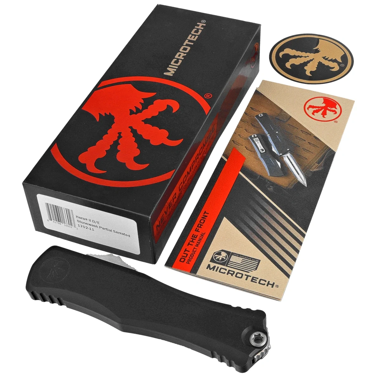 - Hera 2 D/E P/S Black Aluminum, Stonewashed one of the best OTF automatic knives, inspired by the Troodon model. Comfortable to carry while retaining the power and performance of larger designs. Project by A. Marfione, owner of Microtech Knives.