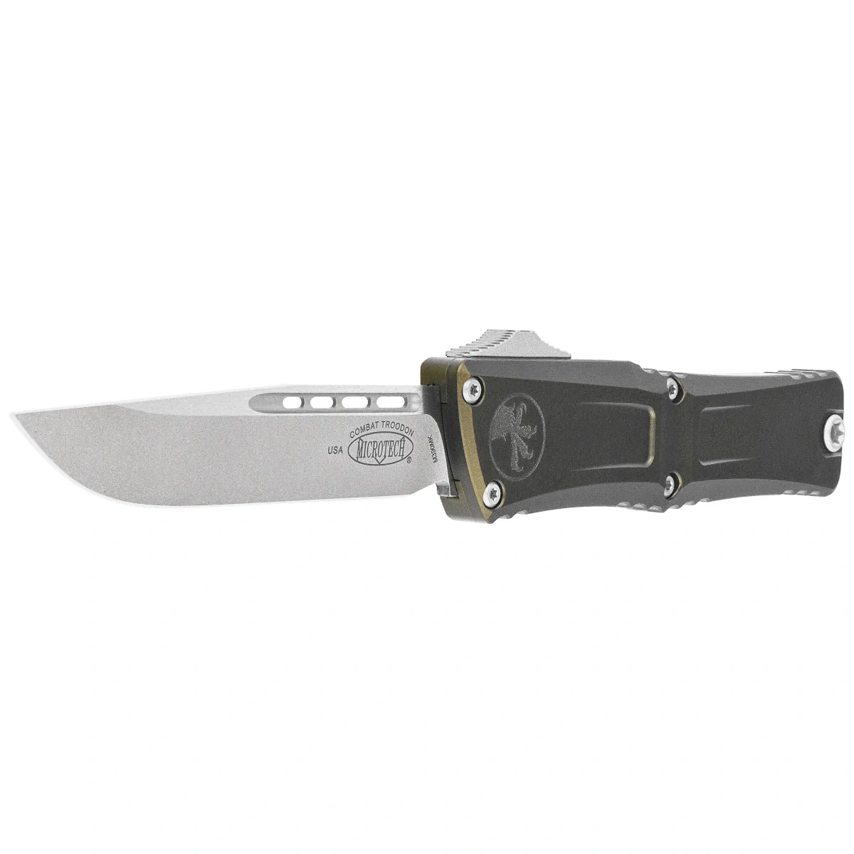 Combat Troodon OTF Line - Troodon means “wounding tooth” in Greek. Although the name was first given to a Raptor-like dinosaur, the name is equally appropriate for Microtech's large OTF knife, designed for all sorts of uses and close combat. The over-the-top,Double Action (D/A) automatic knife is a favorite OTF among law enforcement officers, US armed forces and emergency services personnel. Its rugged construction makes the Combat Troodon® suitable for heavy use, and the advantages of the Out The Front automatic also make it an excellent knife for everyday carry.