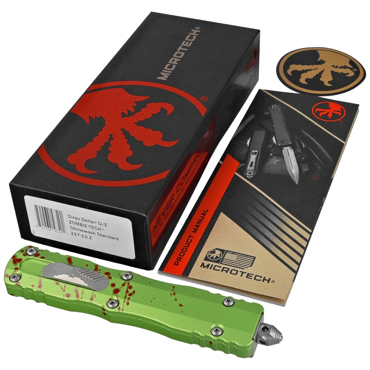 Microtech Dirac Delta D/E OTF Knife Zombie Tech Aluminum, Stonewashed by Tony Marfione (227-10Z)