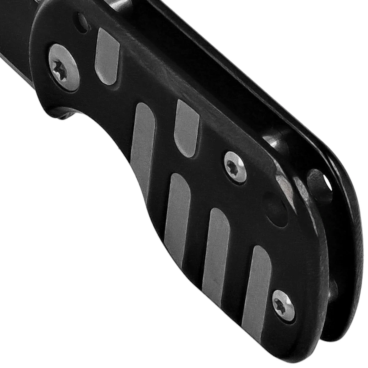 Handle - is made of stainless steel, which translates into high rigidity and mechanical resistance, typical for tool-like folders. Its solid, compact form was designed for a comfortable, secure grip - even under heavy use. Additional milling on the grips increases grip, improving ergonomics and knife control. A rainblack finish on the Handle's surface gives the overall design a consistent, modern look, while enhancing corrosion and scratch resistance. Thanks to its compact dimensions and well-proportioned proportions, the knife fits well in the hand and does not interfere with carrying. The solid lock, quick access and striking design make this model an interesting choice for everyday carry for users looking for something more than a classic EDC folder.