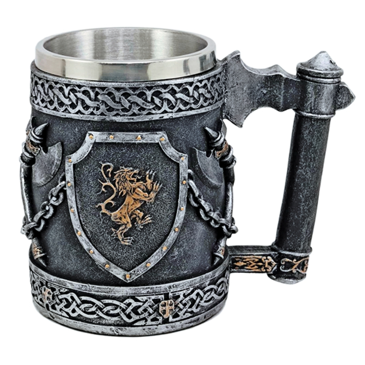 • Tole 10 Imperial Lion-Axe Grey/Golden, Resin-Steel mug is a decorative tankard with a medieval aesthetic, combining a massive form, a steel interior and the rich symbolism of the lion and axe that evokes themes of strength, power and martial glory.