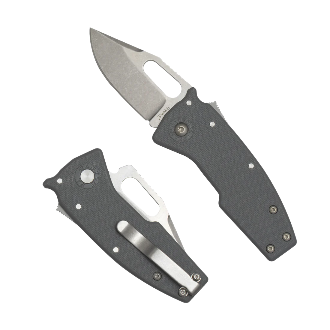 Nano-Shark Clip Point Grey GRN, Stonewashed, the result of years of work and experience of Andrew Demko, long-time designer of Cold Steel. The smallest in the Shark family, designed for the toughest tasks, despite the size a real tool, characterized not only by robustness and power, but also by a unique design. Ergonomic Handle, made of GRN composite (Glass Reinforced Nylon) and Blade made of AUS10A steel. One of the most important elements of the knife is its lock. Shark-Lock™ is an innovative mechanism that is considered one of the strongest in the world. Thanks to it, the knife is not only safe to use, but also gives you the confidence that it will stand up to even the toughest tasks. This is an exceptional example of a compact EDC (Every Day Carry) knife , an excellent choice for anyone looking for a reliable tool for everyday use.