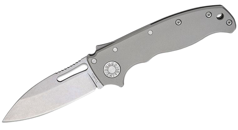 • AD20.5 Slicer Shark Smooth Titanium, Stonewashed, premium compact folding knife with milled titanium Handle, CPM 3V steel Blade and patented Shark-Lock™. Designed by Andrew Demko for the most demanding users.