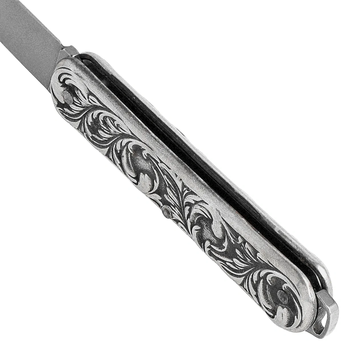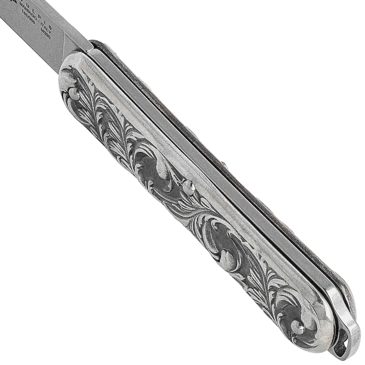 Are you tired of Swiss design? Do you desire something new, fresh, yet elegant? If so, then the Vulpis LE No 140/300 Silver 925, Polished, limited to 300 pieces edition of the 2023 European Product Design Award winner is just for you! This knife, part of the new Fox Knives Vulpis series, is a true masterpiece of Italian craftsmanship. Fox Vulpis is not just a knife, it is a multifunctional tool that is sure to satisfy your needs. Made of good steel, it is small, versatile and extremely durable. But that's not all! Fox Vulpis is available in several variants, depending on the choice of tools, materials used and colors of the grips. Its blade is made of Böhler M390 stainless steel , which is extremely hard and corrosion-resistant. Thanks to this, the Fox Vulpis is not only elegant, but also extremely practical. The Handle of this limited edition is made of intricately engraved sterling silver! Are you ready for a change? Are you ready for Fox Vulpis LE 140/300 Sterlin Silver 925, Polished If yes, then don't delay! Try Italian elegance and experience the difference. Fox Vulpis is waiting for you!
