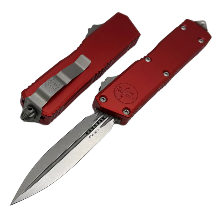 The Scarab II Executive Gen III S/E Red Aluminum, Stonewashed is the pinnacle of excellence in automatic tactical knives, taking inspiration from the original Microtech Ultratech design. Built to withstand the toughest conditions, the new Scarab II is the ultimate choice for heavy use. While retaining the styling features of its predecessor, it sets a new standard for OTF (Out The Front) technology.