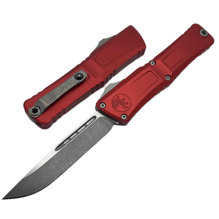 Combat Troodon Gen III S/E Red Aluminum, Apocalyptic this largest of the automatic knives is the pinnacle of precision engineering and tactical prowess in the field of OTF (Out The Front) knives. Built for a wide range of utility applications, it boasts a 25% larger size compared to the flagship Troodon. Precisely crafted, it features a sophisticated and hellishly fast mechanism that extends the razor-sharp blade. 100% made and assembled in the USA. Designed by Anthony Marfione, knifemaker and owner of Microtech Knives.