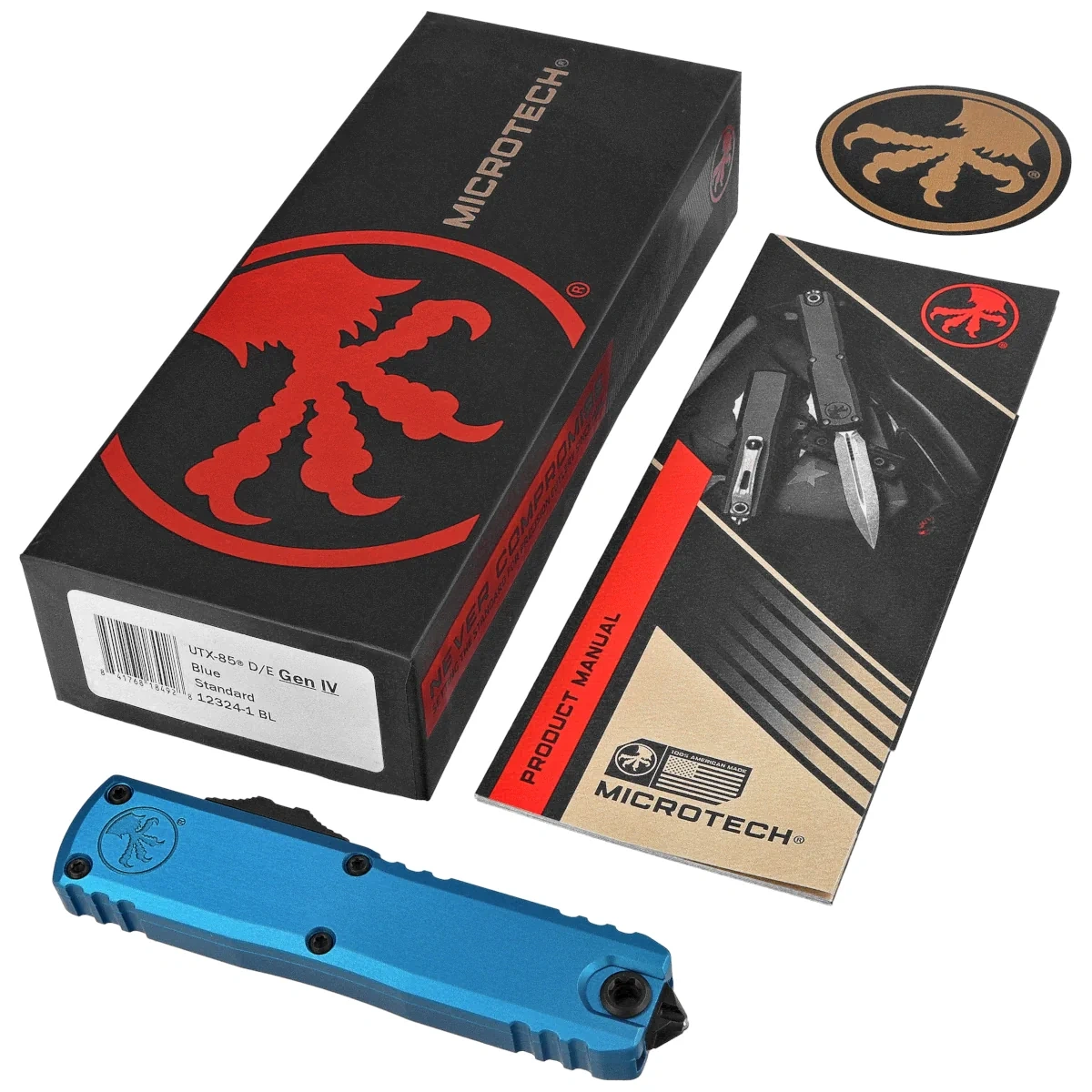 - UTX-85 Gen IV D/E Blue Aluminum, Black is a compact OTF automatic knife from the UTX-85 series. Designed for EDC applications, it retains all the advantages of larger models. Operating in D/A mode, it features a fast blade extension mechanism.