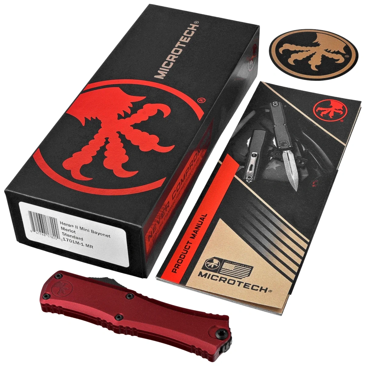 Microtech Hera II Mini Bayonet OTF Knife Merlot Aluminum, Black M390MK by Tony Marfione (1701M-1MR)