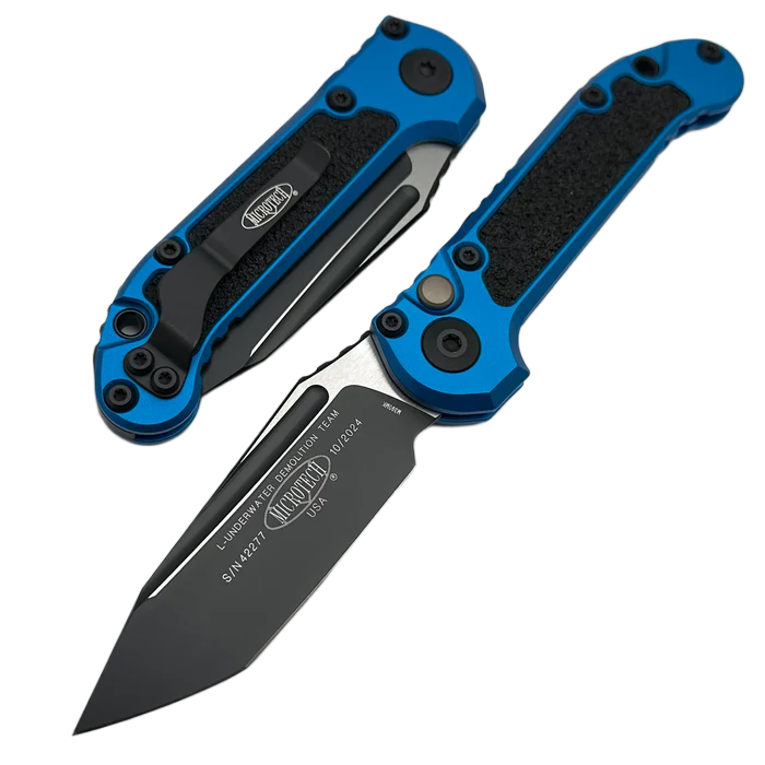 Microtech LUDT Gen III T/E Automatic Knife Blue Aluminum, Black M390MK by Tony Marfione (1136-1BL)