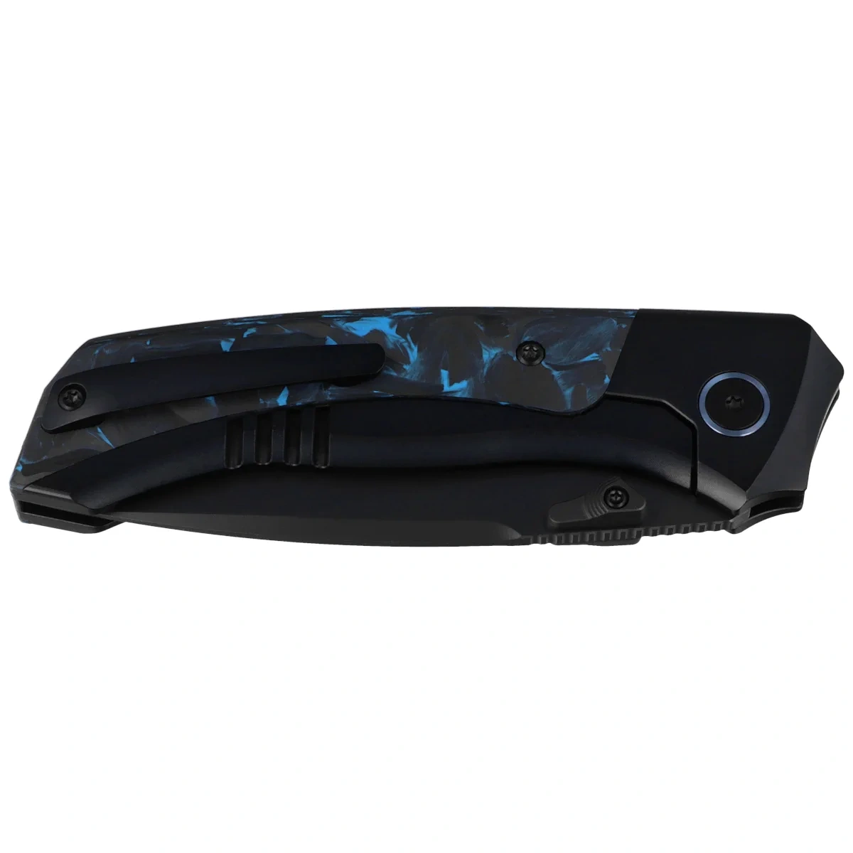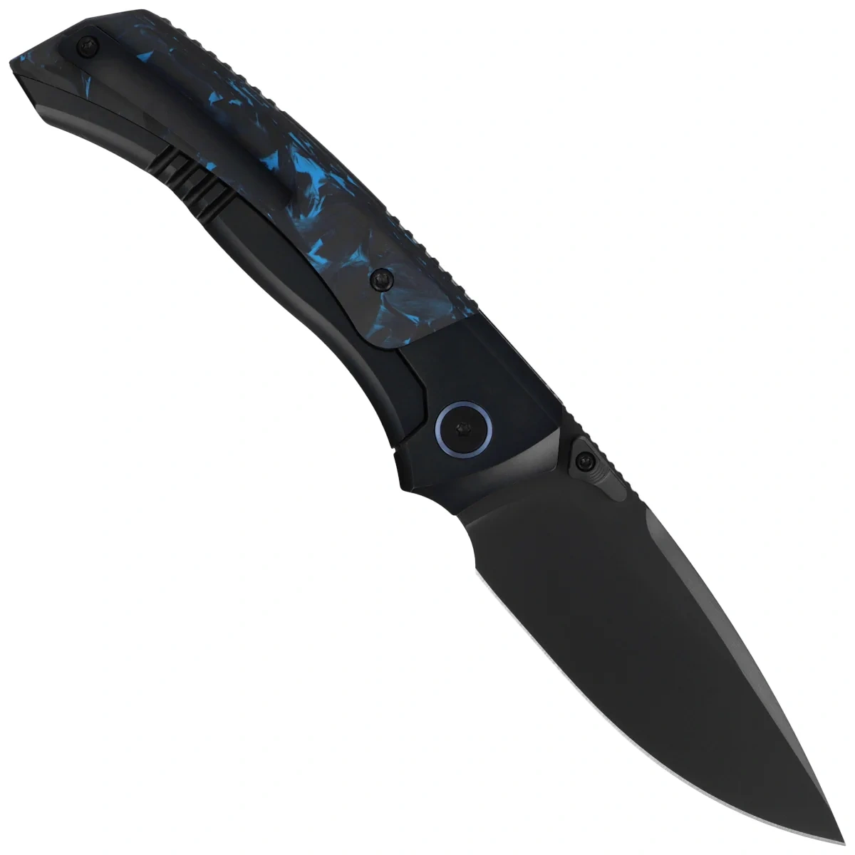 - RT-Steed Black Titanium/Black-Blue Carbon Fiber, Black DLC is a modern premium EDC folding knife that combines refined mechanics, advanced materials and a sleek, technical form designed with conscious use in mind.