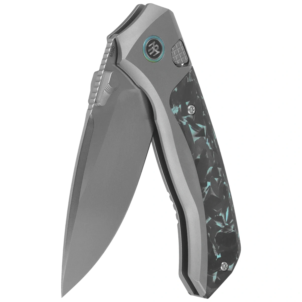 Remette RT-Steed Knife Gray Titanium/Black-Blue Carbon Fiber, Pearlescent M390 (RTWS-TB)