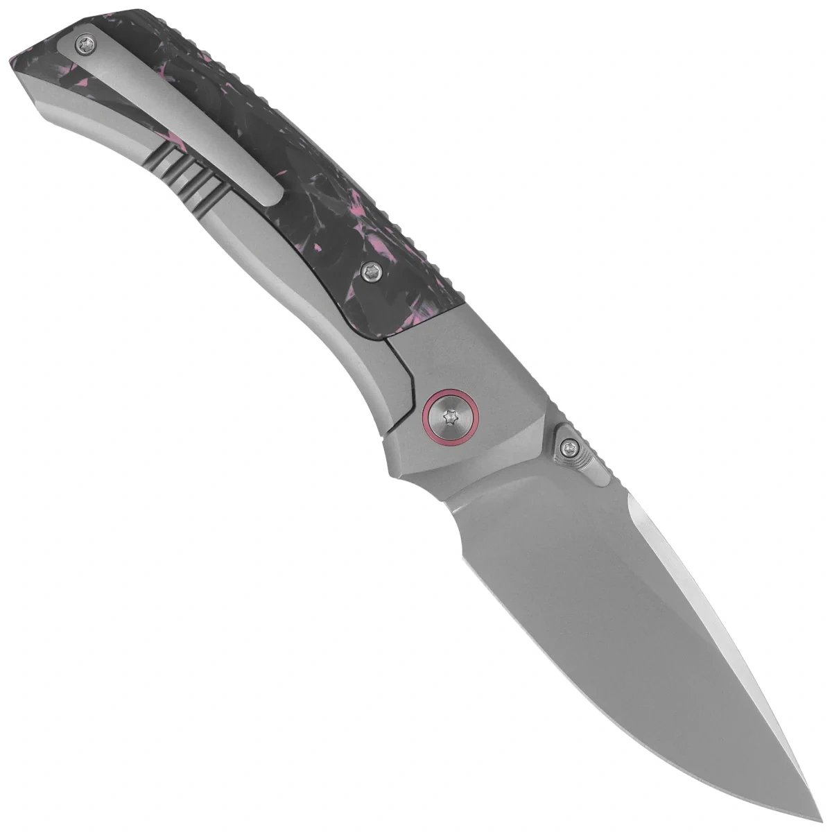 Remette RT-Steed Knife Gray Titanium/Black-Pink Carbon Fiber, Pearlescent M390 (RTWS-TP)